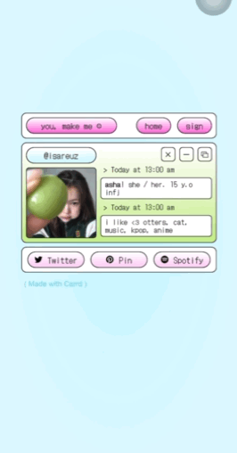 Setiap pesanan carrd yang tidak add-on credit removal, maka akan ada credit dari aku berupa tulisan created with heart by @isareuz.